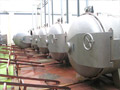 Immediately upon exiting the cook chamber, the racks are wheeling into the cooling area where cold water spray mists over the fish to aid in the rapid reduction of core temperatures. When the cooked fish has reached temperatures low enough for handling, these racks are wheeled into refrigerated cooling rooms where they are held prior to cleaning (skinning, de-boning and loining).